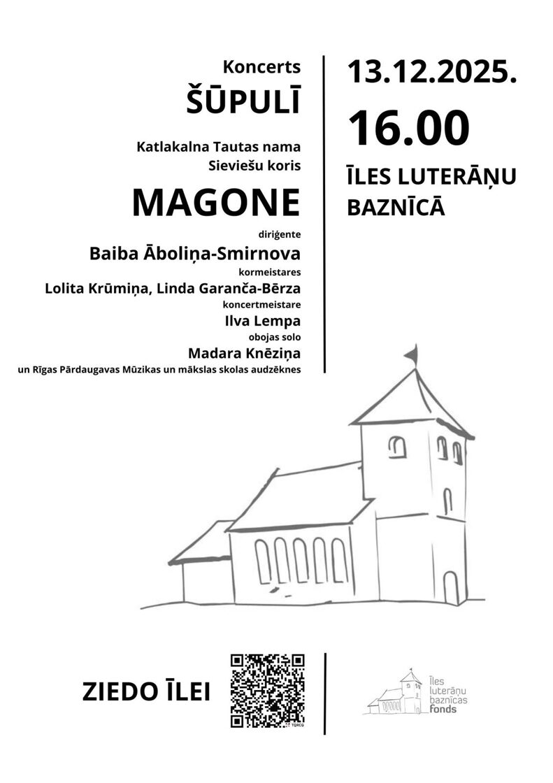 Mīļi aicinām uz sirsnīgu un svētku noskaņām piepildītu koncertu “Šūpulī”, kas notiks 13. decembrī plkst. 16.00 Īles luterāņu baznīcā.